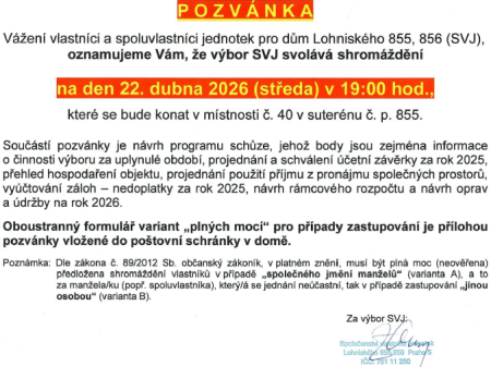 Pozvánka na shromáždění SVJ - 22.4.2026